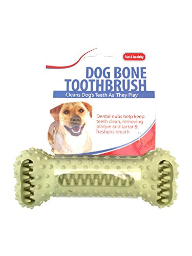-. Feature : The chew-it-yourself toothbrush for dogs / Chewing and gnawing the bone removes food, plaque and debris from your dog's teeth, down to the gums / For even greater results, add toothpaste or snacks in the dental nubs. Have your dog chew on the bone for 3 to 5 minutes / Helps Remove Plaque and Tarter, Healthy & Clean / For greater results, try adding toothpaste (formulated for dogs) in the nubs. 100% vulcanized rubber, 6"L.