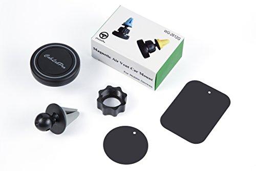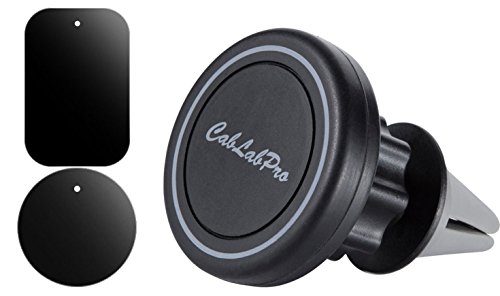 CabLabPro WG-2612G Air Vent Magnetic Car Mount for Cell Phones with 2 Sticky Metal Plates for GPS & Tablets, 360 Rotation Car Mobile Phone Holder with Rubber Clamps, Black and Grey