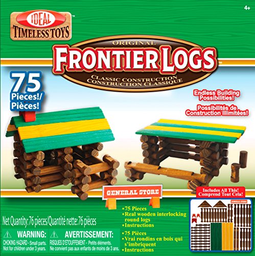 -. Feature : Timeless toy that has inspired children's creativity and imagination for years / Includes a storage canister and (75) logs in a variety of sizes that interlock together in different combinations to create cabins, houses, fences and more / Logs have a paint-free finish and are stained with a vegetable based food coloring, then sealed with paraffin wax for your child's safety / Guaranteed to stimulate, foster basic building techniques and challenge the imagination of every child / Recommended for children 4-years of age and older