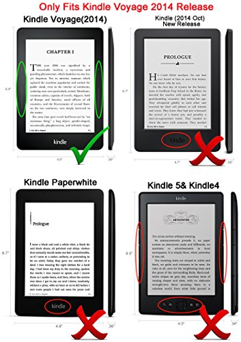 [Description] 1. Specifically Designed For Kindle Voyage 2014 Version with 6-inch Display and Built-in Adaptive light sensor And PagePress)- Will Not Fit Previous Generation Kindle Devices 2. Auto wake your eReader or put it to sleep by opening or closing the cover 3. Origami case can fold back for one-handed reading and stand reading 4. Easy clip-on application and precise cut-outs with full access to all controls and features 5. Ultra slim and ultra lightweight edition protecting your device without adding unnecessary bulk or weight.High quality PU leather with hardback cover protecting your devices from crashing_ scratches_ dirt and grime