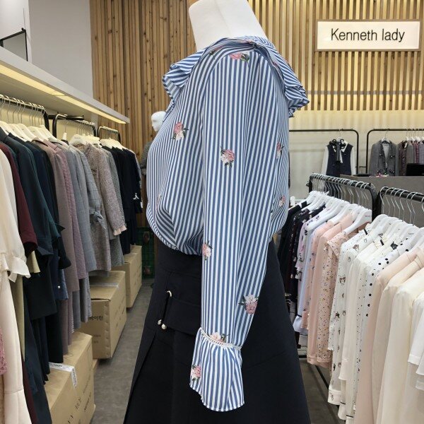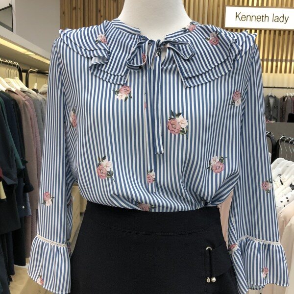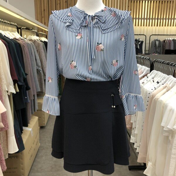 플라워 패턴의 귀엽고 시원한 색상의 블라우스입니다.
