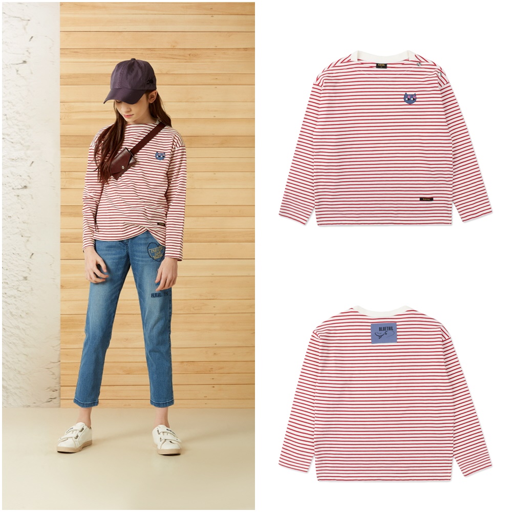 A4TS05BU의 고양이 모티브를 원포인트 자수패치로 제안해 형광핑크 속눈썹과 인디고블루컬러가 쁘띠한 상품입니다.