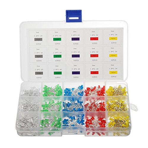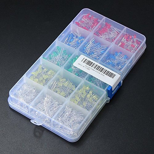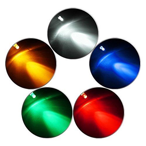 Elfeland 750pcs ( 5 colors x 150pcs) LED Light Emitting Diodes 3mm Round Assorted Color 2pin Diffused LED Electronic Parts White Red Yellow Blue Green Box Kit