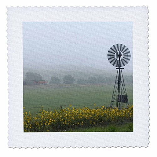 3dRose qs_91545_1 Nebraska Sandhills, Farm windmills, Sunflower field - US26 GHA0093 - Gayle Harper - Quilt Square, 10 by 10-Inch