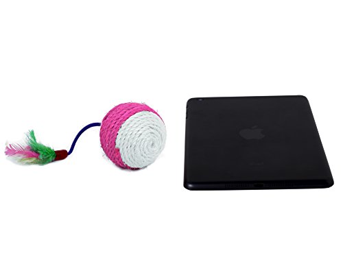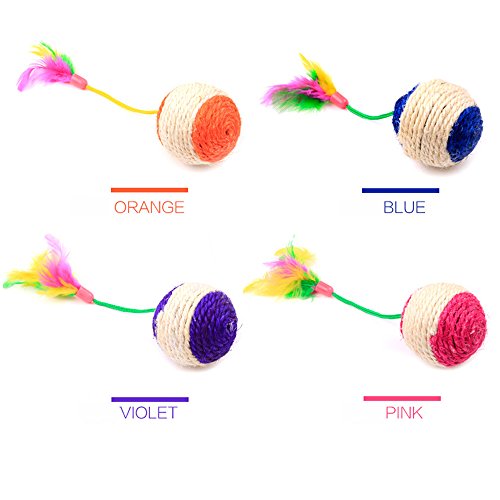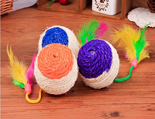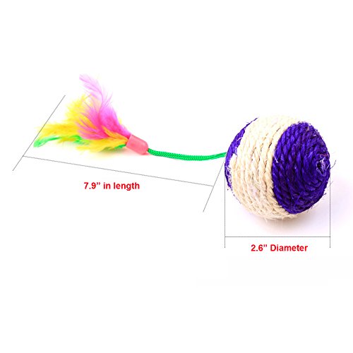 Note: It may have 1-3mm differs due to manual measurement. You will get the random color for this sisal balls,.Thanks for your understanding. This is a great interactive play toy with rings when bouncing it, your kitty will get more fun by there instinct. Package Included: Cat Kitten Feather Sisal Rope Ball