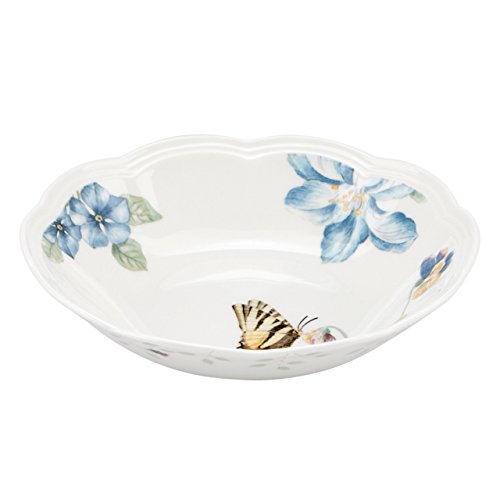 The beauty and freshness of a spring meadow has fluttered right to your table with the Butterfly Meadow Blue Fruit Bowl. Delicate butterflies and sky blue over-sized peonies and hydrangeas decorate the dinnerware.Feature