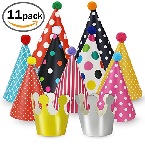 Party Hats 11 Pack Fun Cone Party Hats for Kids or Adults By Cefanty