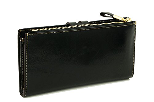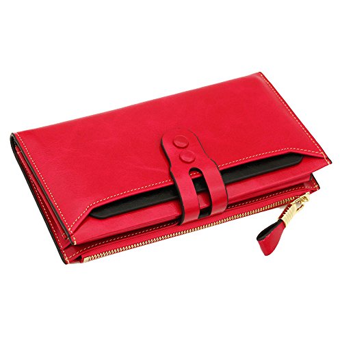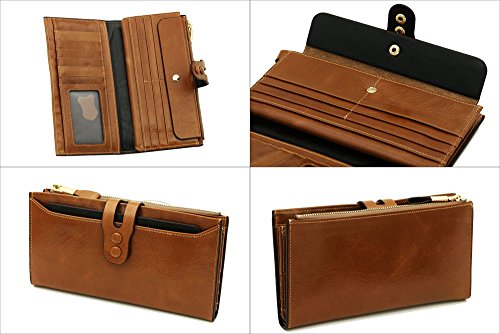 -. Title : Women Oil Waxy Genuine Leather Wallet with Zipper Pocket Large Capacity Purse