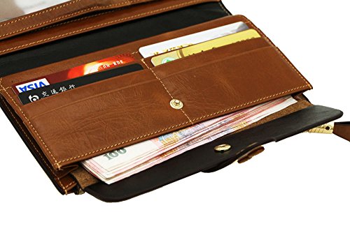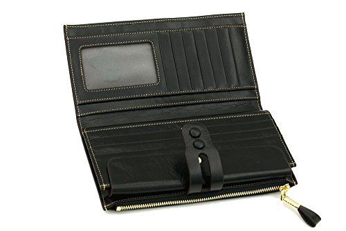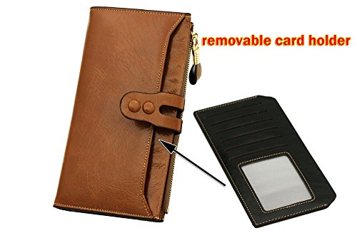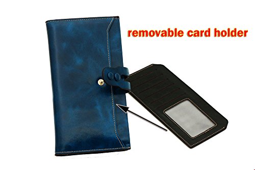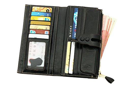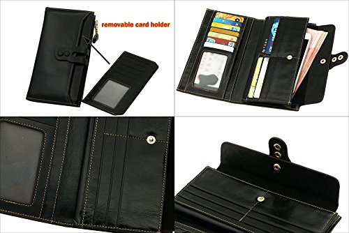 -. Feature : 100% Oil Waxy Genuine Leather Wallet. Made of high quality oil wax cowhide, the oil wax leather makes the purse more luxury. / Measures - ((L)7.48" x (W)0.98" x (H)3.94" inches / Organizer Building - Functional with 19 card slots,2 photo slots and 1 removable card holder,make the wallet more unique and economic. Besides, includes 4 cash compartments and 1 zippered pocket. / Great As Gift - Nice present to friends, family on birthday, festivals. / Large capacity for money, cards, coin and mobile phone.