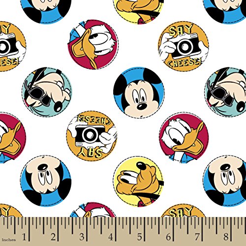 Disney Mickey Say Cheese Character Badge Fabric by The Yard