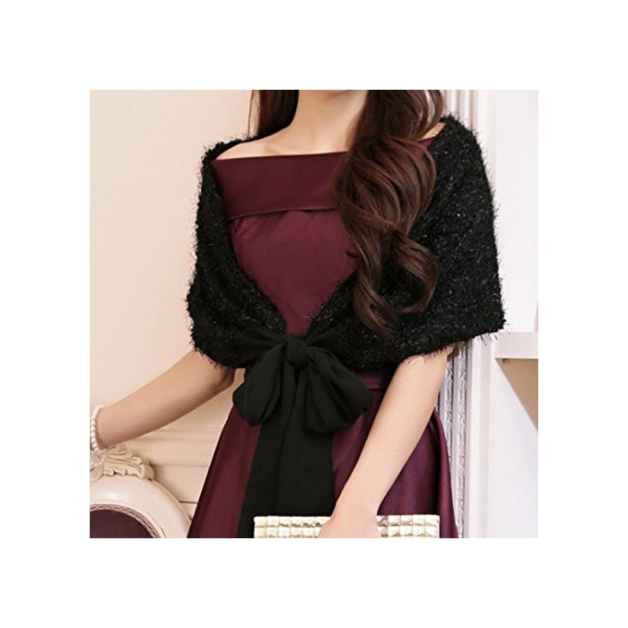 LaLaPanda 걸쳐 입는 것만으로 드레스 업 숄 스톨 파티 결혼식 2차 모임 (1.블랙)