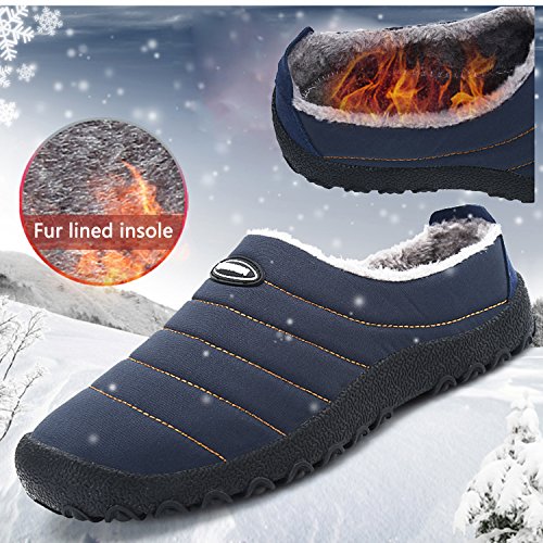 -. Feature : WATERPROOF & DURABLE - Quality waterproof fabric, combined with a water-safe, sealant-equipped rubber sole for indoor and outdoor wear, works to keep your foot completely dry. When you are in the snow or rain for a long time, you may get a little wet, because it is a waterproof cloth with a non-leather surface. / LIGHTWEIGHT & NON-SLIP - This outdoor shoes very environment friendly and waterproof thermo plastic rubber sole offers you an anti-slip protection of the sole increasing friction. The sole material is not easy to deform and environmental protection, without peculiar smell. It also does no harm to any floor surfaces including wood and tile. / CLASSIC & FASHION WARM - Classic and fashionable breathable lightweight warm moccasin design combines slip-on convenience, plus faux fur pile lined cover your feet make you feel warm no matter in cold weather or snow daywith all-day support fit for both indoor and outdoor wearing. / OCCASIONS & GIFTS - Various sizes and playful conservative color for you to choose and Perfectly design for daily wear around house bedroom liveroom or go to office work, outdoor walking, car driving. It is a better gifts for your daddy husband boyfriend or best friends. Unisex couple cotton shoes for winter. / SATISFACTION GUARANTEE - With WAWEN, you're taking no risk with your purchase. We offer 100% no risk money-back guarantee if you're not thrilled with your purchase for any reason. Just tell us and we will do our best to give you the most satisfactory solution. Please check our WAWEN storefront for more slipper styles and other deals that are waiting for you!