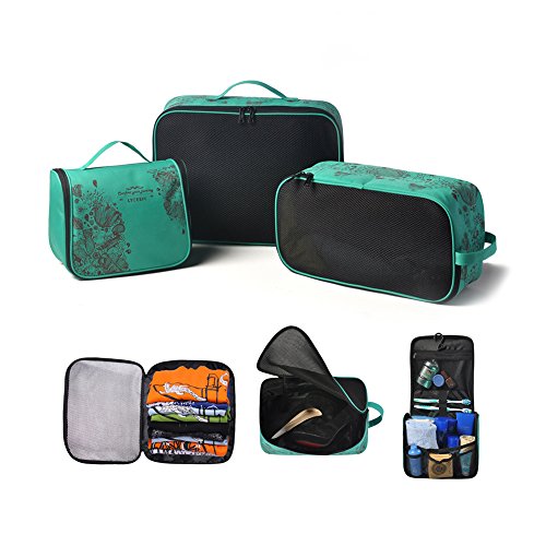 - Title : LYCEEM 3PCS Women's Beauty Toiletry Bag Packing Cube Shoes Case Travel Set (Green)