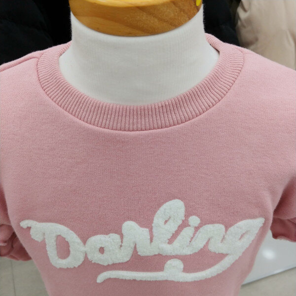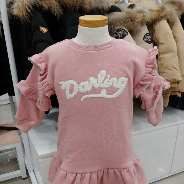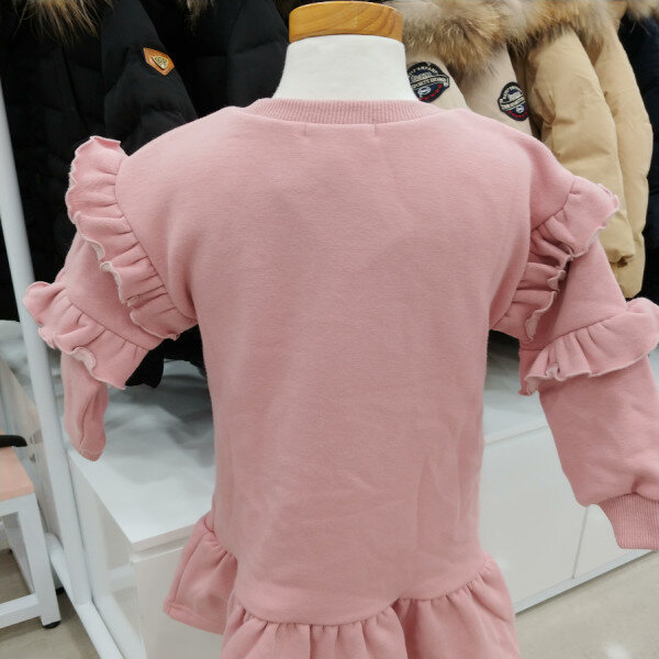 핑크 기모원피스에요~팔 라인에 프릴로 포인트되어있고요 짱짱하게 스판도 섞여서 활동도 편하고 예쁘게입을수있어요~