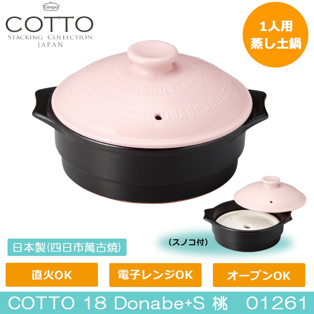 和洋問わないシンプルなデザインがどんなお料理・食卓にも映えます。また、スノコ付なので蒸し鍋としてもご利用頂けます。 製造国:日本(四日市萬古焼) 素材・材質:陶器 商品サイズ:22×19×12cm 重量:1600g 仕様:容量:1200cc直火・電子レンジ・オーブン:使用可食洗機:使用可 ※サプライヤー直送品 ご注文後5~6営業日後の出荷となります【商品名】COTTO 18 Donabe+S 桃 01261