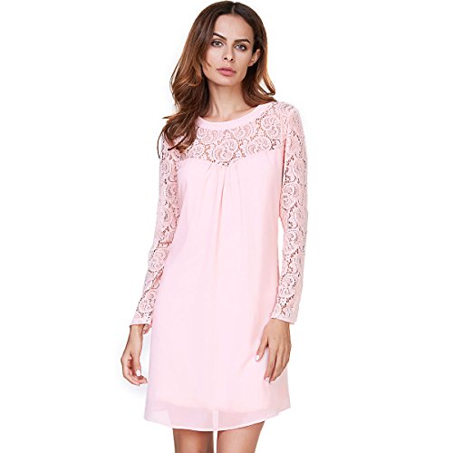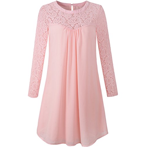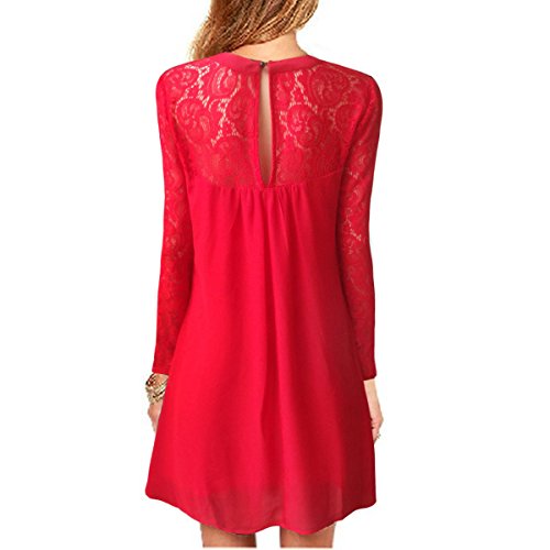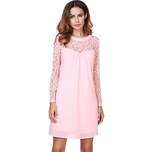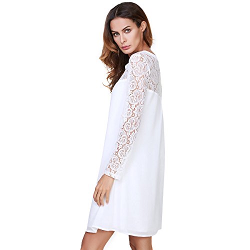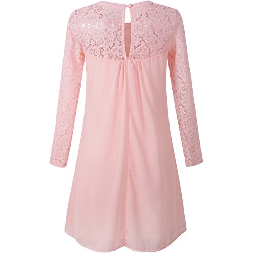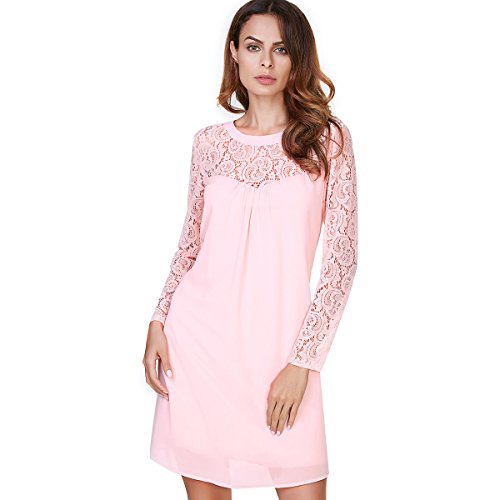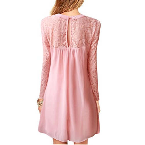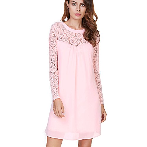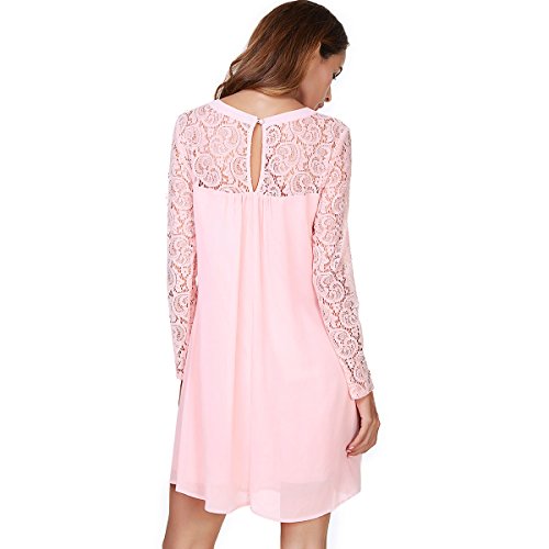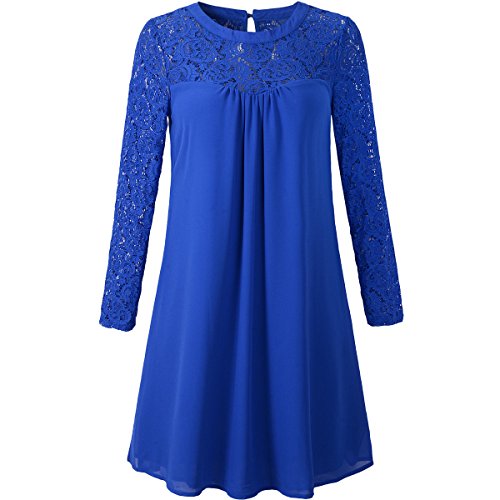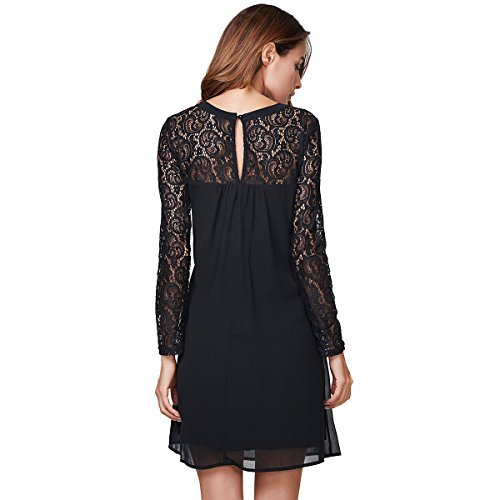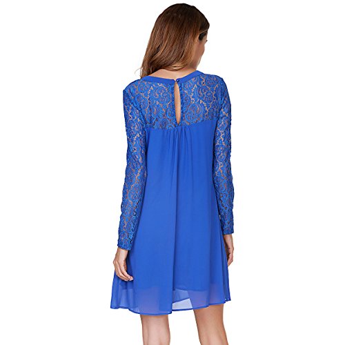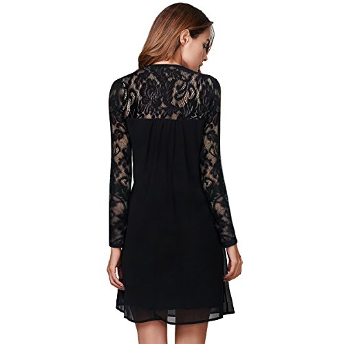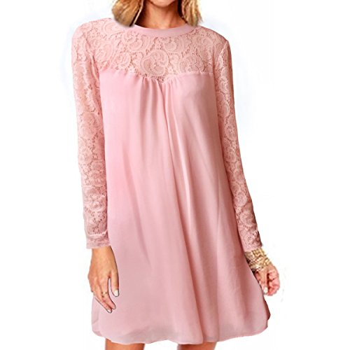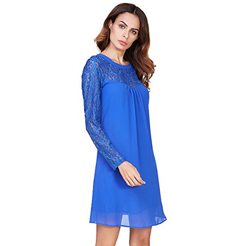 | vanberfia Women's Long Sleeve Lace Patchwork Loose Casual Mini Chiffon Dress |