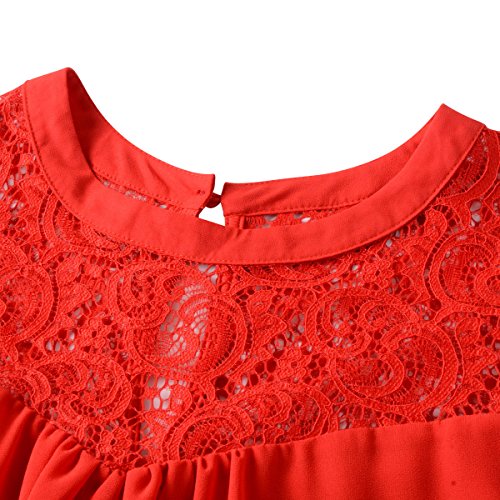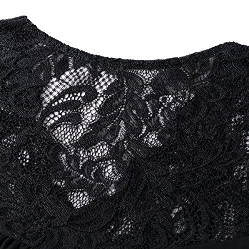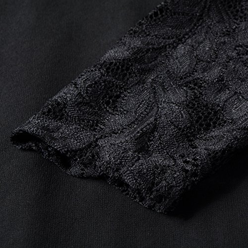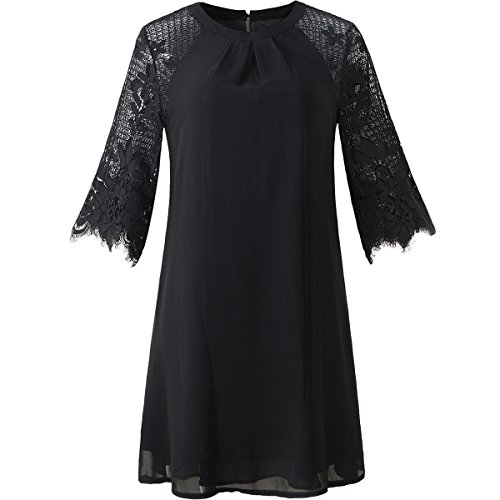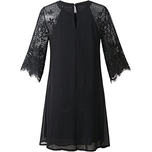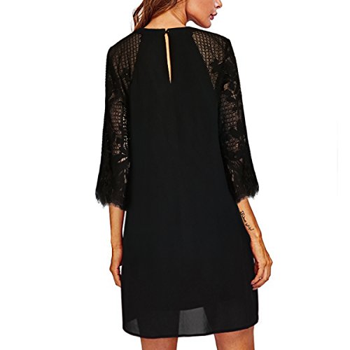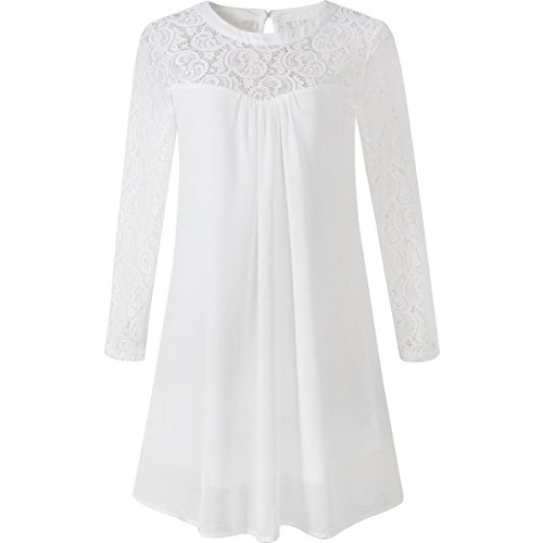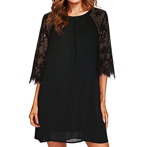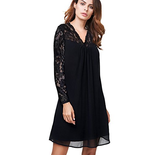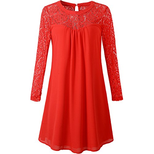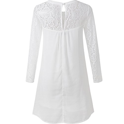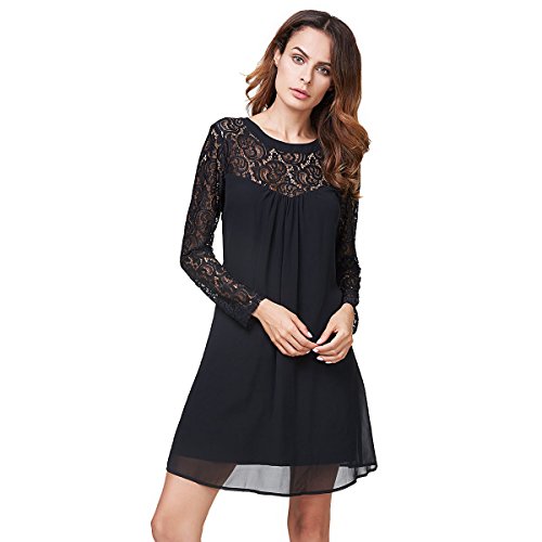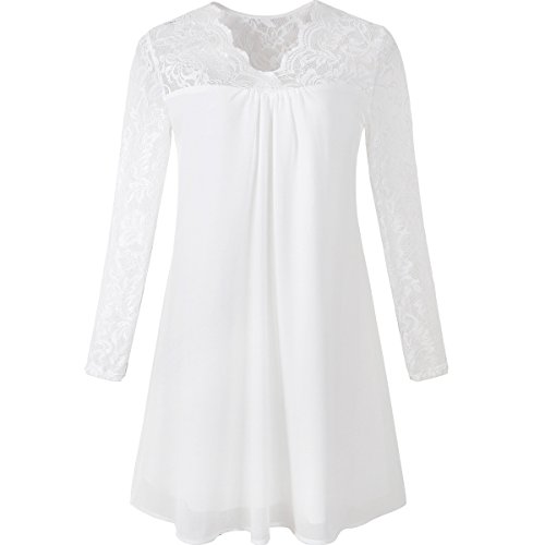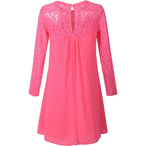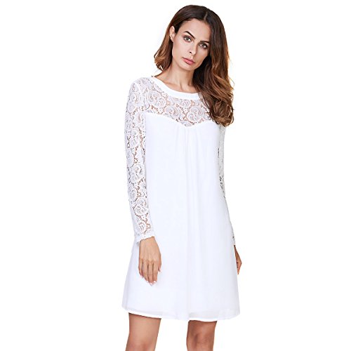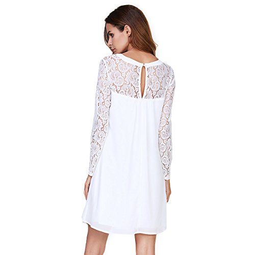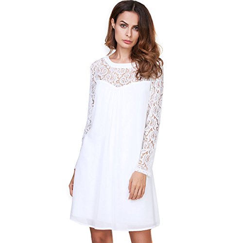 | vanberfia Women's Long Sleeve Lace Patchwork Loose Casual Mini Chiffon Dress |