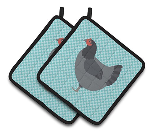Caroline's Treasures BB8009PTHD Jersey Giant Chicken Blue Check Decorated Pot Holder, 7.5" x 7.5", Multicolor