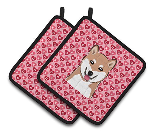 Caroline's Treasures Shiba Inu Hearts Pair of Pot Holders, 7.5HX7.5W, Multicolor