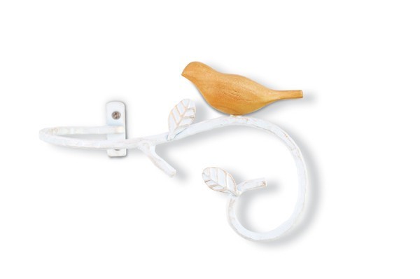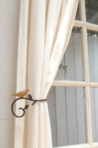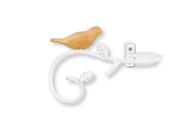 くるりと曲線を描くアイアンの枝に小鳥がとまった、ナチュラルで軽やかなカーテンタッセルです。窓辺の明るい日差しがよく似合いそうな爽やかなホワイトと、シックで落ち着いた雰囲気のダークブラウンの2色が揃いました。 |