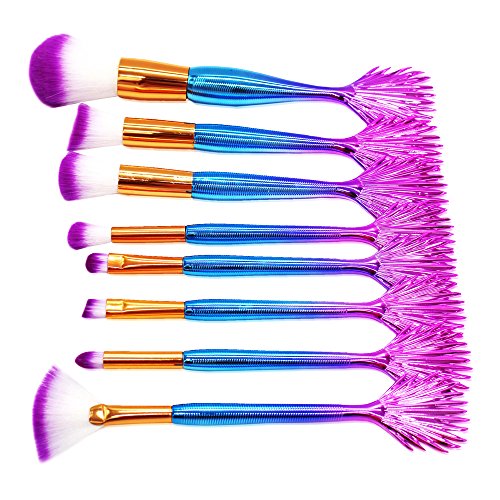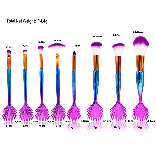 Mermaid Makeup Brushes Sets, NIZIYI 8 Piece Mermaid Cosmetic Brush Collection Soft Bristles Eyeshadow Foundation Eyebrow Lip Concealer Brushes Tool with...