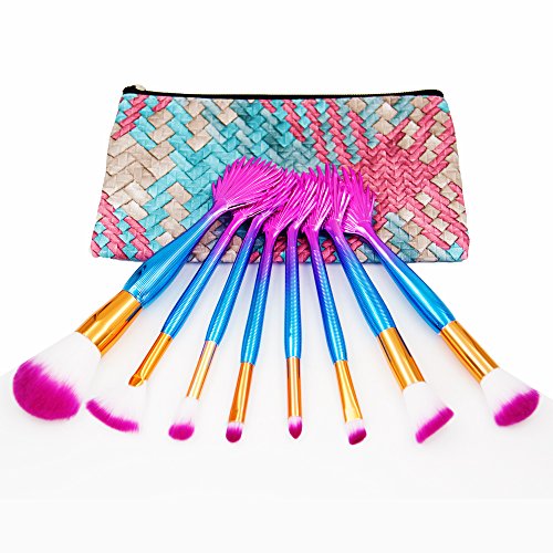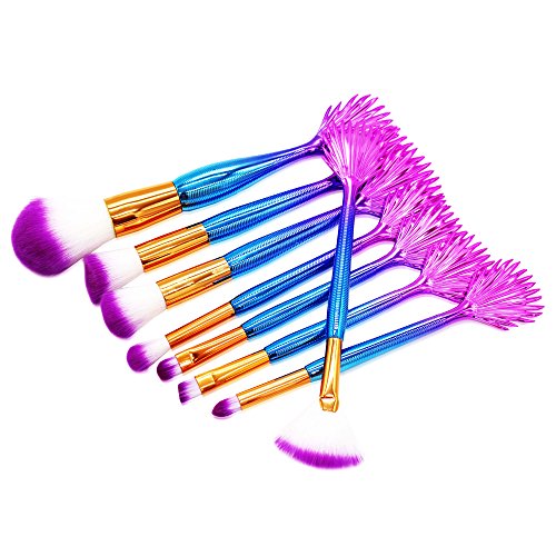 - Unique Gradient Colors - This make up brushes are all in stylish multi colors mixed gradient color and Patent Mermaid Tail Design, which will give you a personalized visual feel, also decorates your dressing desk to makes it more dazzling.