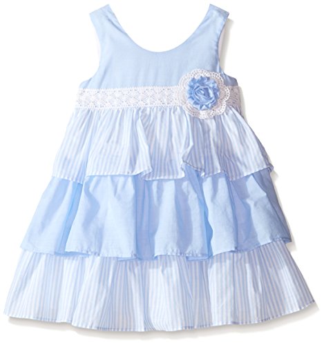 This lovely tiered dress is made of gauze cotton layers with a floral applique