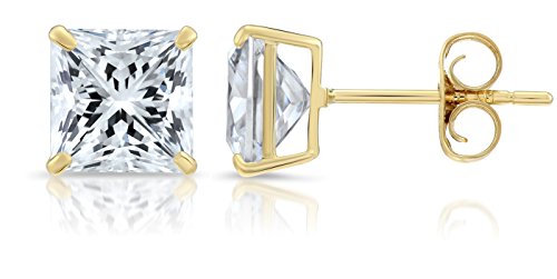 Sweet and simple, these charming Yellow Gold stud earrings have been finely crafted from exquisite 14k Gold. The beautifully elegant studs are available in a variety of sizes (2.5MM 3MM, 4MM, 5MM, 6MM, 7MM, 8MM) and are features with friction backings for a secure and comfortable fit. The classic square shaped stud showcases a glamorous princess cut. These lovely earrings are a great way to add a touch of shimmer to your look, with their brilliantly sparkling Cubic Zirconia stones. A sophisticated design that never goes out of style, no jewelry collection is complete with out a timeless and chic pair of square studs!Feature