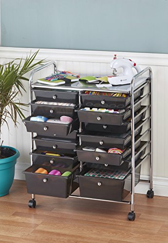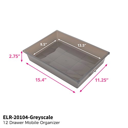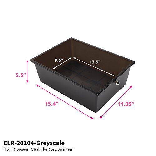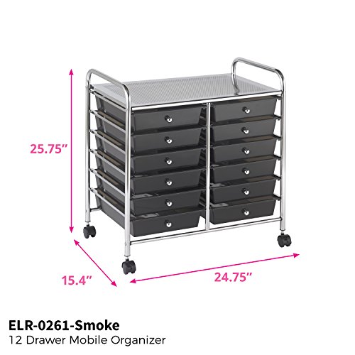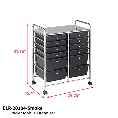 ECR4Kids 12-Drawer Mobile Organizer, 25.75" H, Smoke