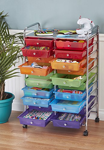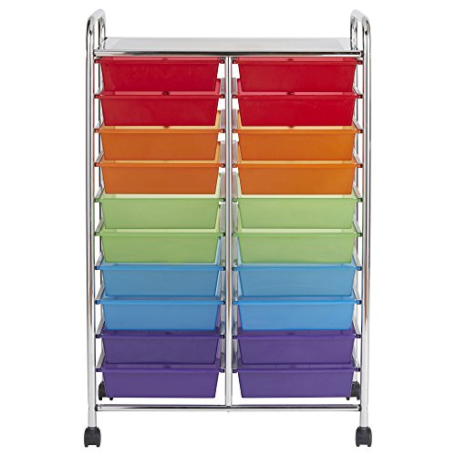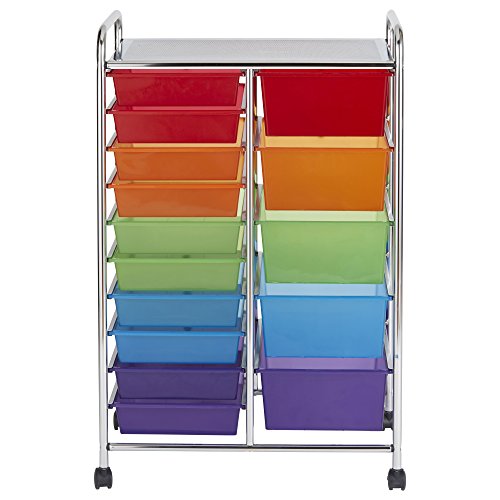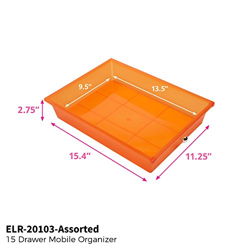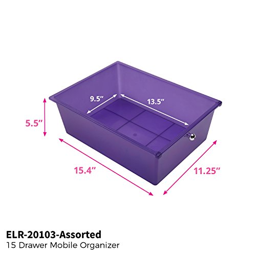 ECR4Kids 15-Drawer Mobile Organizer, Assorted Colors