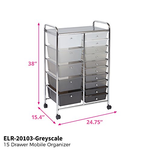 ECR4Kids 15-Drawer Mobile Organizer, Grey