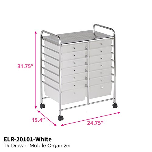 ECR4Kids 14-Drawer Mobile Organizer, White