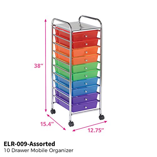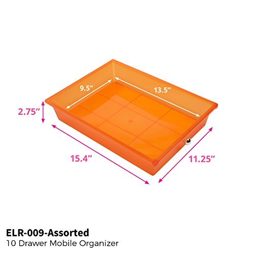ECR4Kids 10-Drawer Mobile Organizer, Assorted Colors