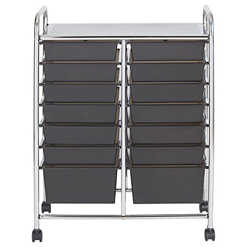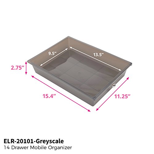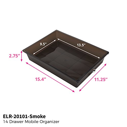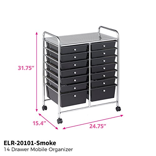 ECR4Kids 14-Drawer Mobile Organizer, Smoke
