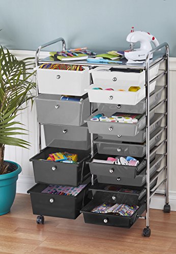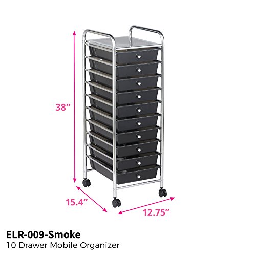 ECR4Kids 10-Drawer Mobile Organizer, Smoke