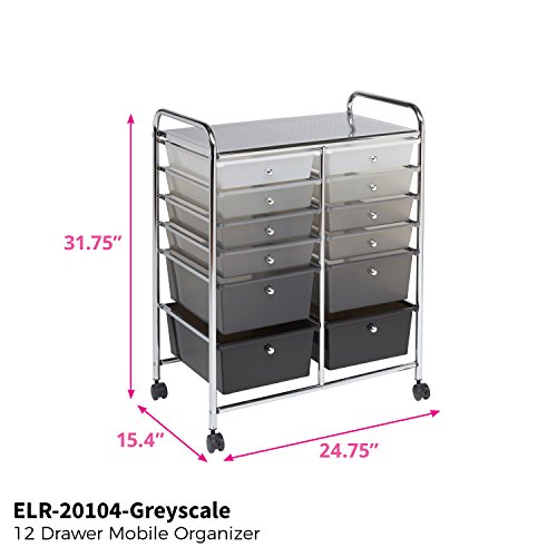 ECR4Kids 12-Drawer Mobile Organizer, 25.75" H, Grey