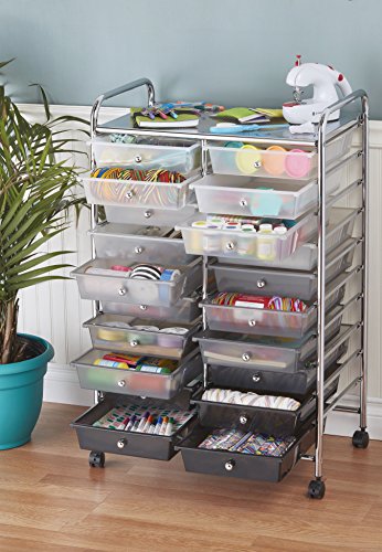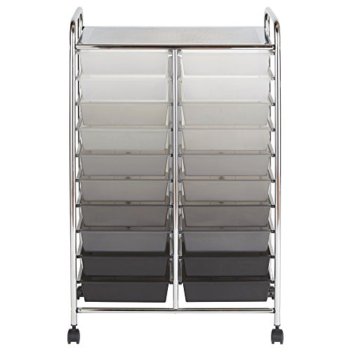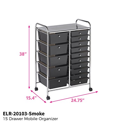 ECR4Kids 15-Drawer Mobile Organizer, Smoke