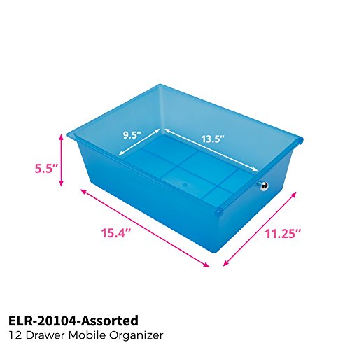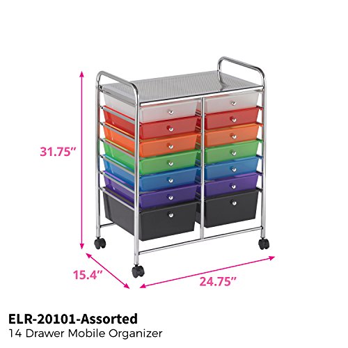 ECR4Kids 14-Drawer Mobile Organizer, Assorted Colors