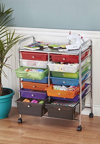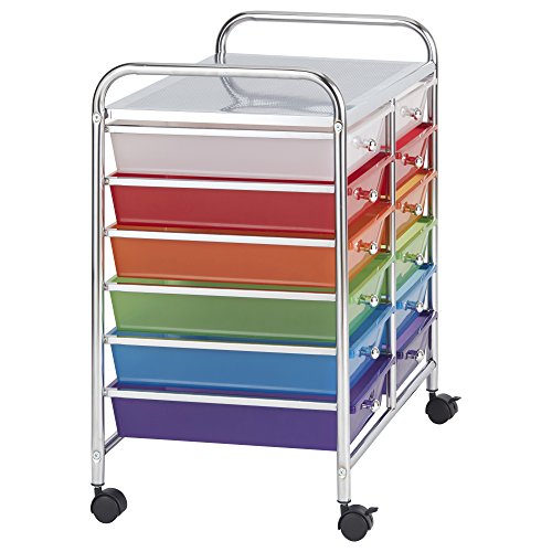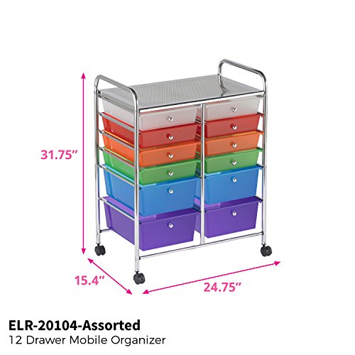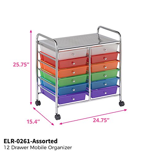 ECR4Kids 12-Drawer Mobile Organizer, 25.75" H, Assorted Colors
