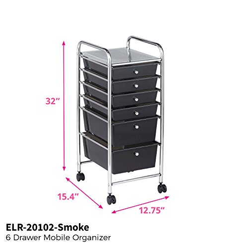 ECR4Kids 6-Drawer Mobile Organizer, Smoke