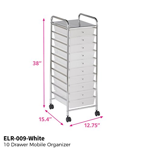 ECR4Kids 10-Drawer Mobile Organizer, White