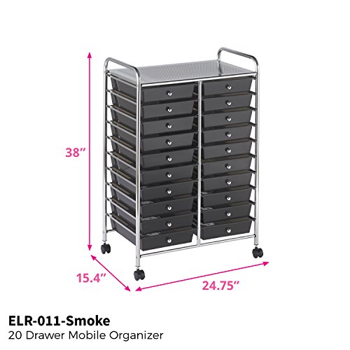 ECR4Kids 20-Drawer Mobile Organizer, Smoke