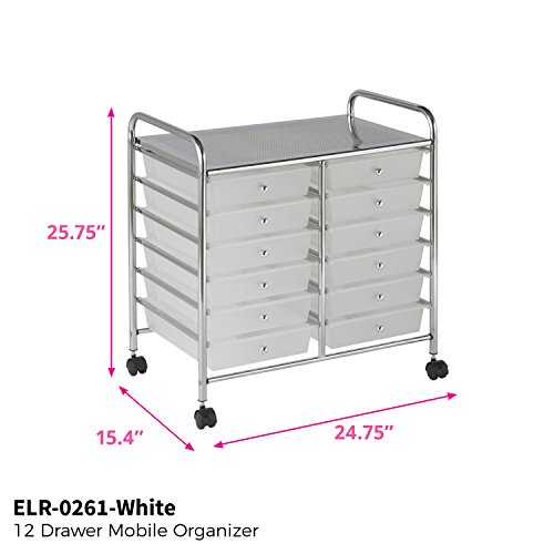 ECR4Kids 12-Drawer Mobile Organizer, 25.75" H, White
