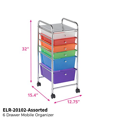 ECR4Kids 6-Drawer Mobile Organizer, Assorted Colors