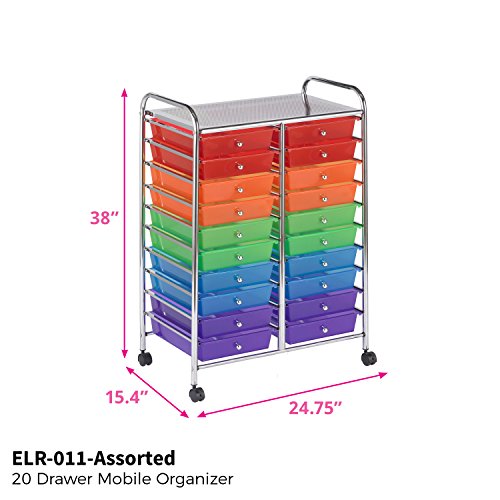 ECR4Kids 20 Drawer Mobile Organizer, Assorted Colors
