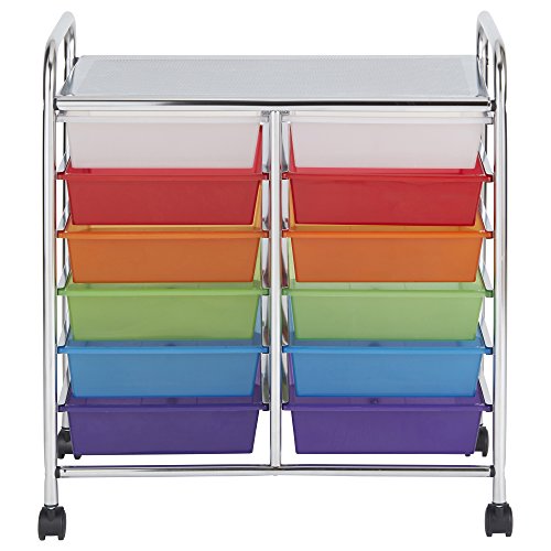 ECR4Kids 12-Drawer Mobile Organizer, 31.75" H, Assorted Colors