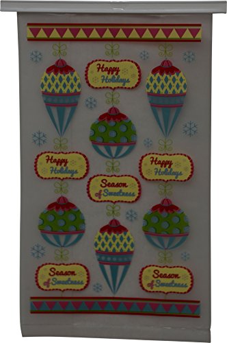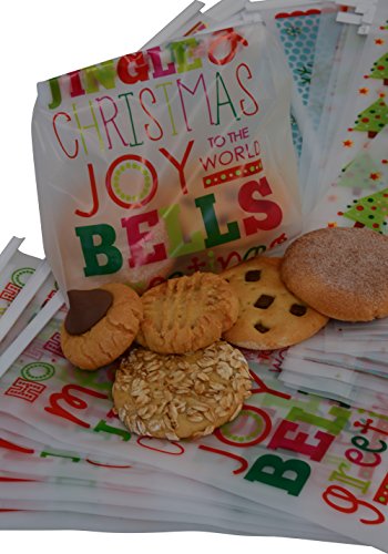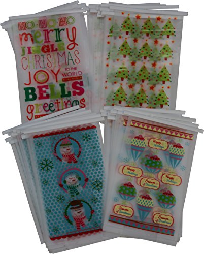 48 Christmas cookie bakery bags for small, Pastries or Candy; translucent plastic with Resealable tie tab; 8.5" x 5" no gusset, Holiday designs, 12 of each design, set of 48 bags