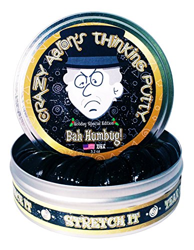 -. Feature : Bah Humbug, 4 inch can of 3.2oz putty includes golden coin. / The story of Ebenezer Scrooge is one for the ages. Miserly and miserable, he lives a life of solitude and sadness. He is rich in wealth, but not in spirit. / It's only after his ghostly visits that he begins to understand that compassion, love and generosity are what matter most. / And that money is best when you give it away. Crazy Aaron thinks so, too. / That's why he's included a golden coin in each tin of this sparkly black Thinking Putty.