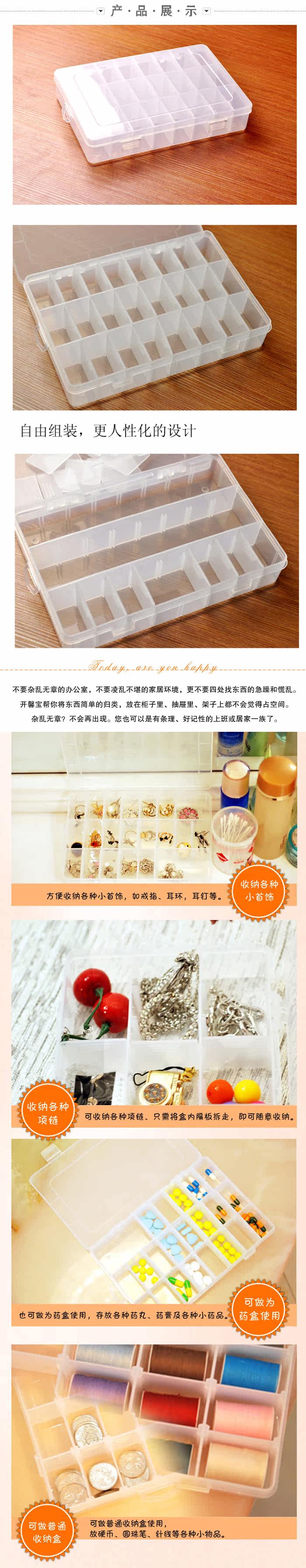 DIY首饰盒(24格)可拆卸透明塑料盒整理盒收纳盒睫毛盒钻盒 药盒