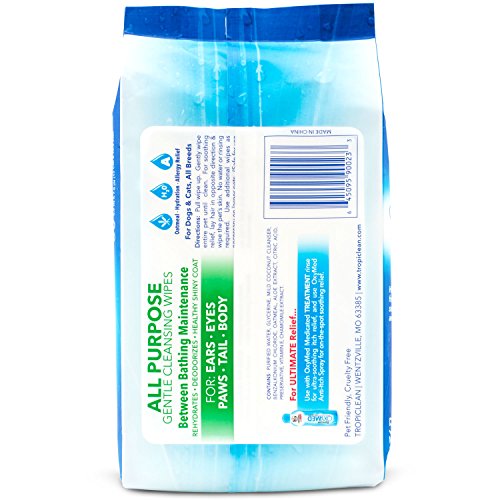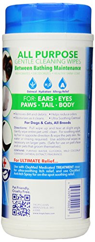Our gentle all purpose wipes help relieve pet itching from dandruff, seborrhea and hot spots. We use oatmeal to provide soothing relief and moisture to the skin and coat, while the moist wipe removes dirt and debris, reducing odor. Using our all purpose wipes between baths will help keep your pet healthy, clean and comfortable.Feature